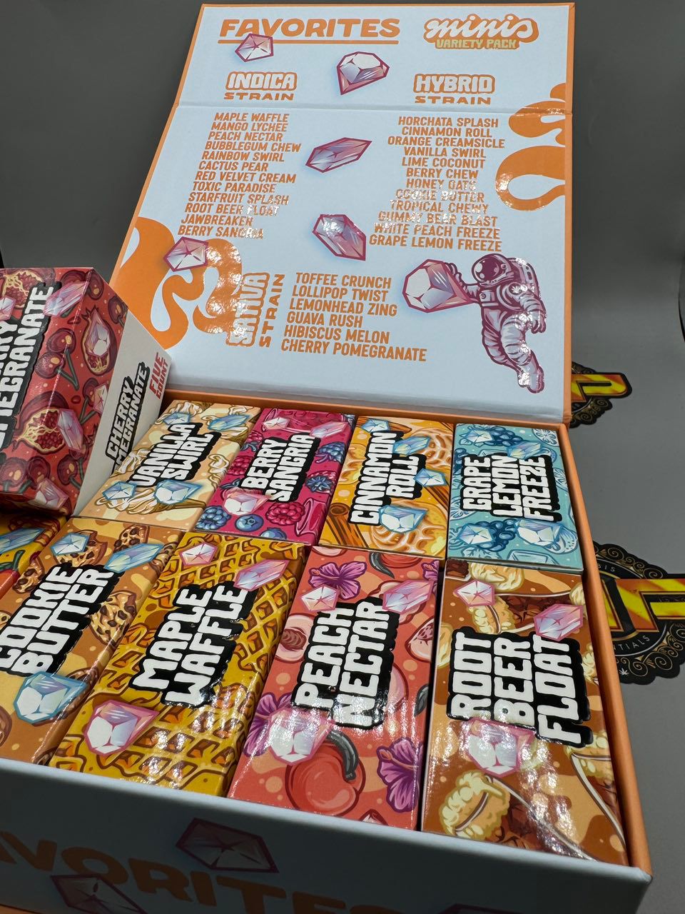 Specifically, the 2G Favorites Minis Liquid Diamond Disposable Variety Pack (Orange Box) represents the pinnacle of this innovation. This carefully curated collection brings together six distinct flavor profiles, each housed in a sleek, ultra-portable mini device containing 2 grams of premium liquid diamond concentrate. Consequently, you receive a comprehensive tasting journey through the Favorites flavor universe, all presented in the iconic orange box that has become synonymous with quality and variety.