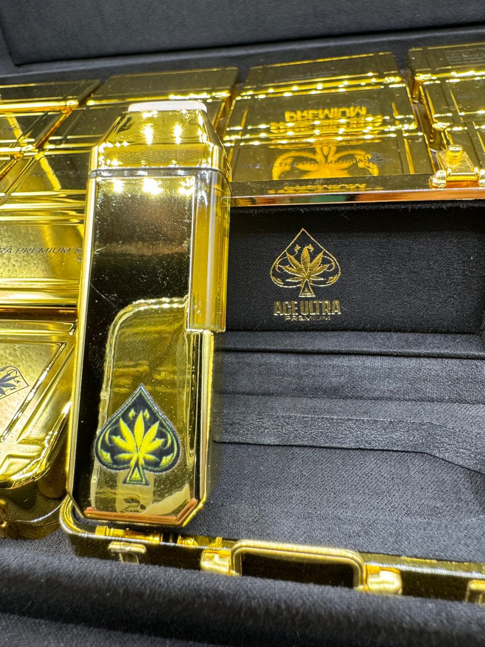 The Signature Gold Collection is defined by luxury and attention to detail. From the sleek gold-accented disposable to the distinctive gold suitcase packaging, every element is crafted to convey exclusivity. Therefore, Ace Ultra Premium is not just a vape—it is a statement piece.