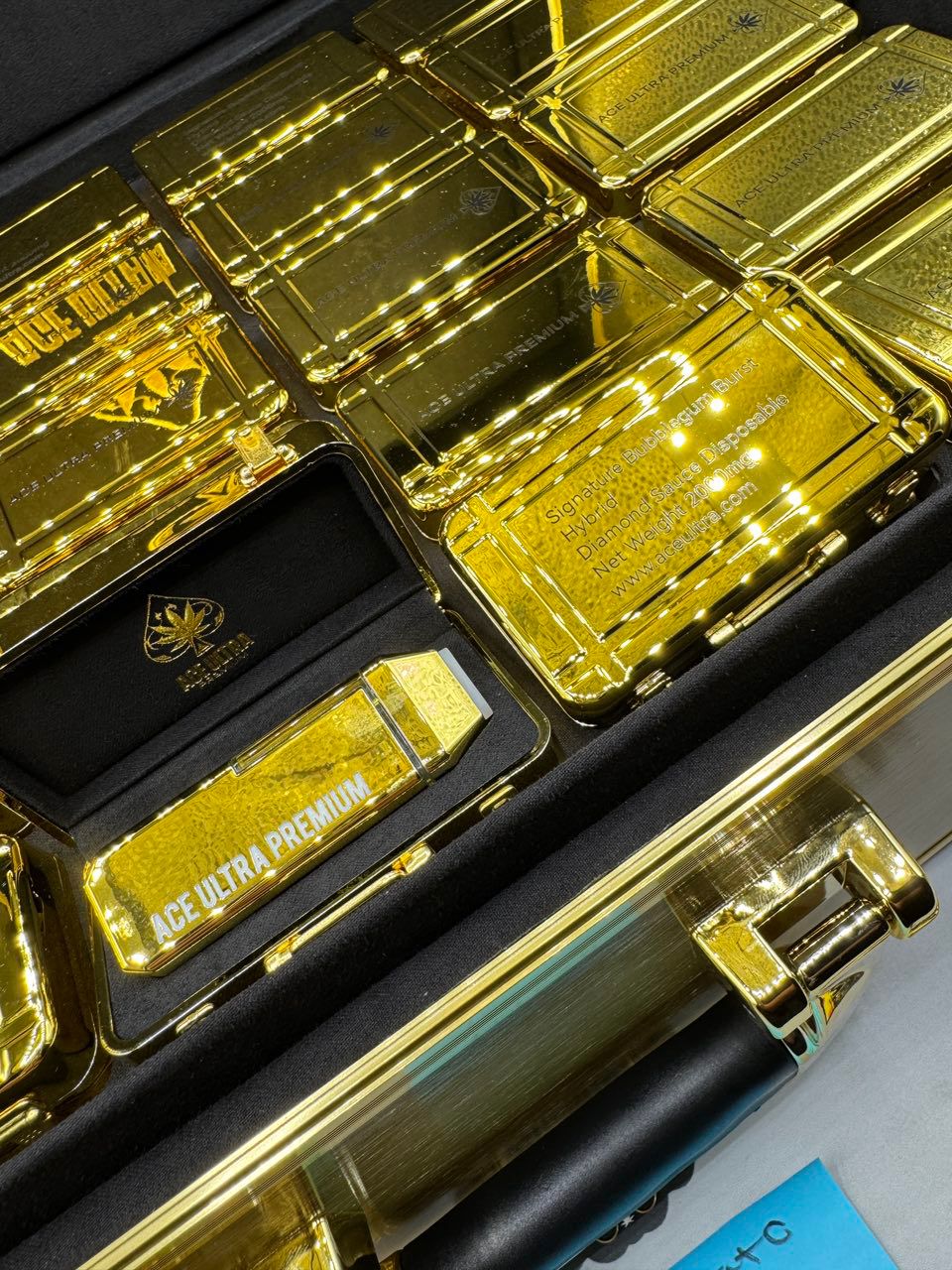 Ace Ultra Premium 2G Disposable from the Signature Gold Collection represents the pinnacle of modern cannabis vaping, combining innovation, luxury design, and high-potency formulation into one refined device. Crafted with THC diamond sauce and housed in the iconic MINIS Gen 5 disposable, this release elevates both performance and presentation. Moreover, the newly introduced gold suitcase packaging signals exclusivity, authenticity, and elite quality at first glance.