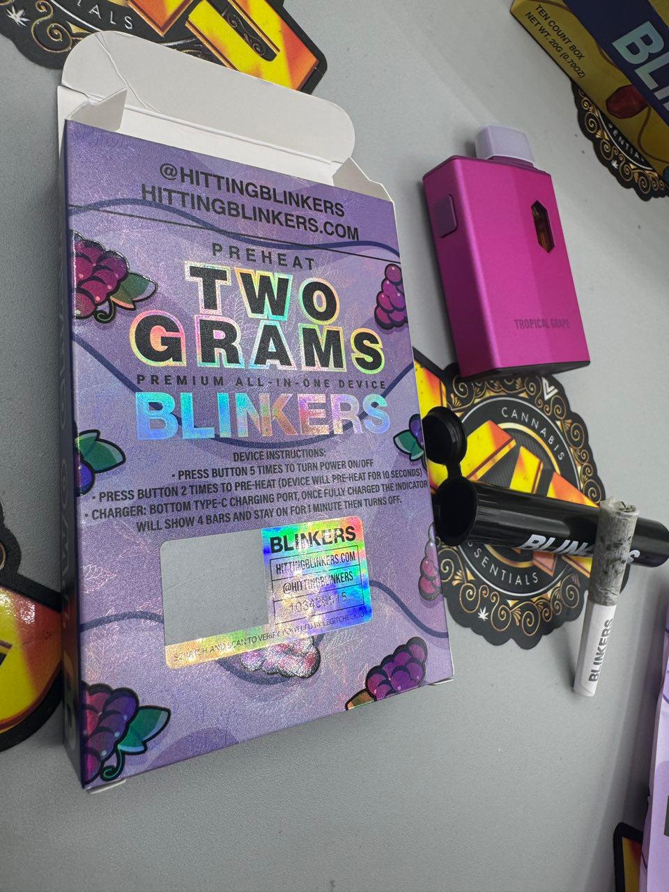 Each package includes one 2G Blinkers disposable and one hash hole infused joint.