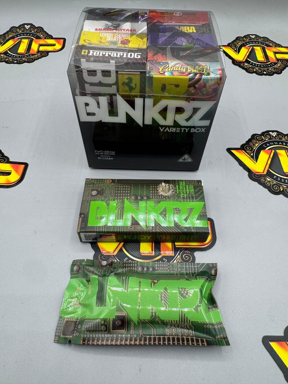 The variety box includes multiple BLNKRZ 2g disposables, each featuring a different terpene profile or flavor, allowing users to switch experiences without committing to one strain.