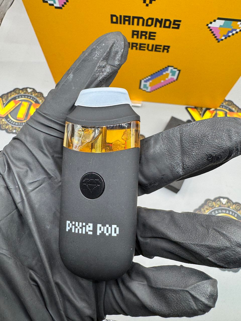 The Pixie Pods vape device contains solid THCa diamonds that gradually melt from the heat of the coil over time . As more diamonds melt, the overall THC concentration in the remaining oil increases, delivering progressively stronger hits.