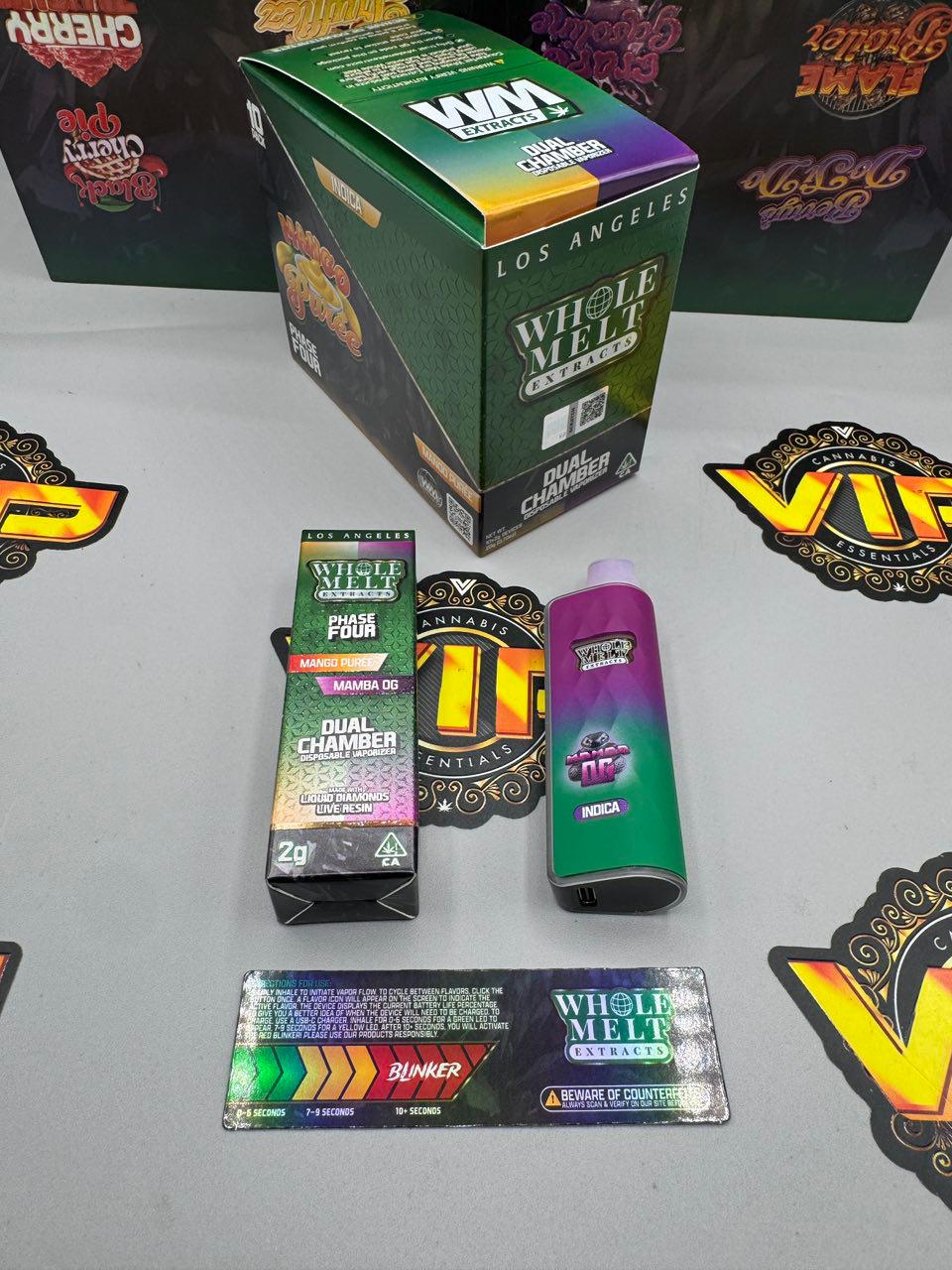 Upgrade to Whole Melt Extracts Phase 4 dual chamber 2g disposable. Liquid diamonds + live resin, dual flavors, strong effects, rechargeable. We can Handle Any Amount – Buy today!